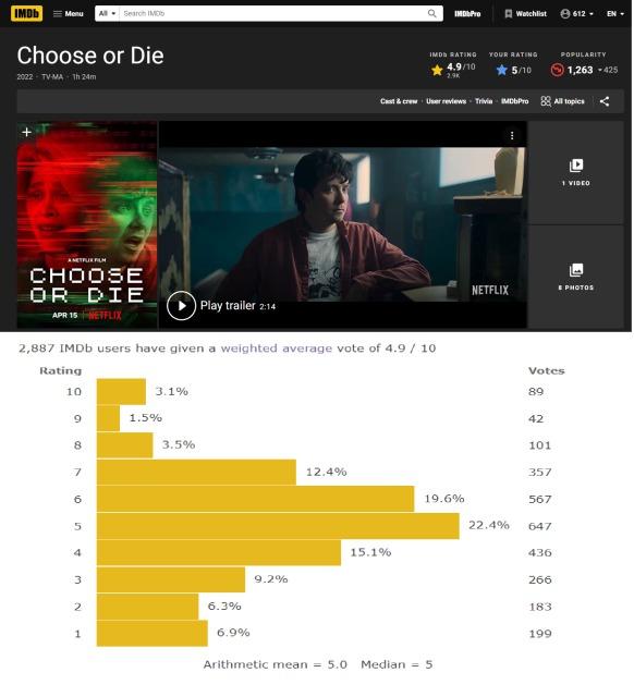 チューズ・オア・ダイ: 恐怖のサバイバルゲームは海外でも評価は低いようです。